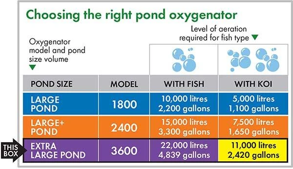 The 3600 Litre Oxygenator will help keep your pond healthy running up to 20 air stones at a time, creating a healthy oxygen rich pond that is beneficial to your fish and biological filter bacteria. Your 3600 Pond Oxygenator pump is cost effective to run with its low 32w design, and can be easily maintained giving you years of service. All fish and pond life require oxygen rich water to great the perfect environment to remain healthy, essential filter bacteria that breakdown highly toxic ammonia and nitrate – also need oxygen to flourish, and help keep the pond free from toxic waste. Extra water movement from air stones helps the pond pump circulating water and can improve clarity.