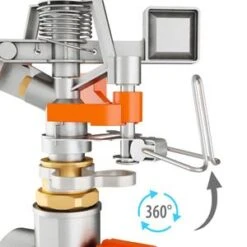 Claber Impact Pulsating Sprinkler on metal spike is easy to use and ideal for large areas. The pulsating sprinkler is adjustable from 0° to 350° or can be set to continuous 360° rotation. The metal spike keeps the sprinkler sturdy and securely anchored to in the ground while watering. A diffuser screw provides uniformed watering and the deflector to lower the jet height if needed.