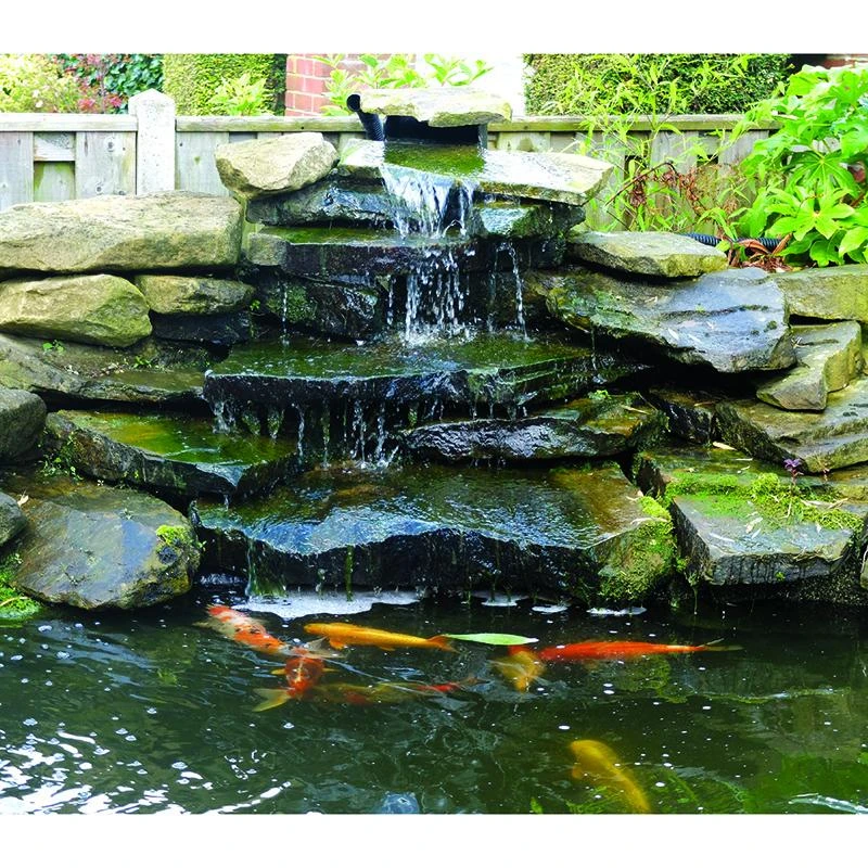 A pump where you control the flow. From 4396lph to 9200lph. Using the weatherproof electronic controller it allows you to change the flow rate up or down. This has a number of benefits: Pump can be run ‘low’ in winter – ticking over at just 25 watts. Adds an extra degree of excitement to watercourses and waterfalls. Flow can be increased in the summer – bringing additional oxygen to your fish when they need it.